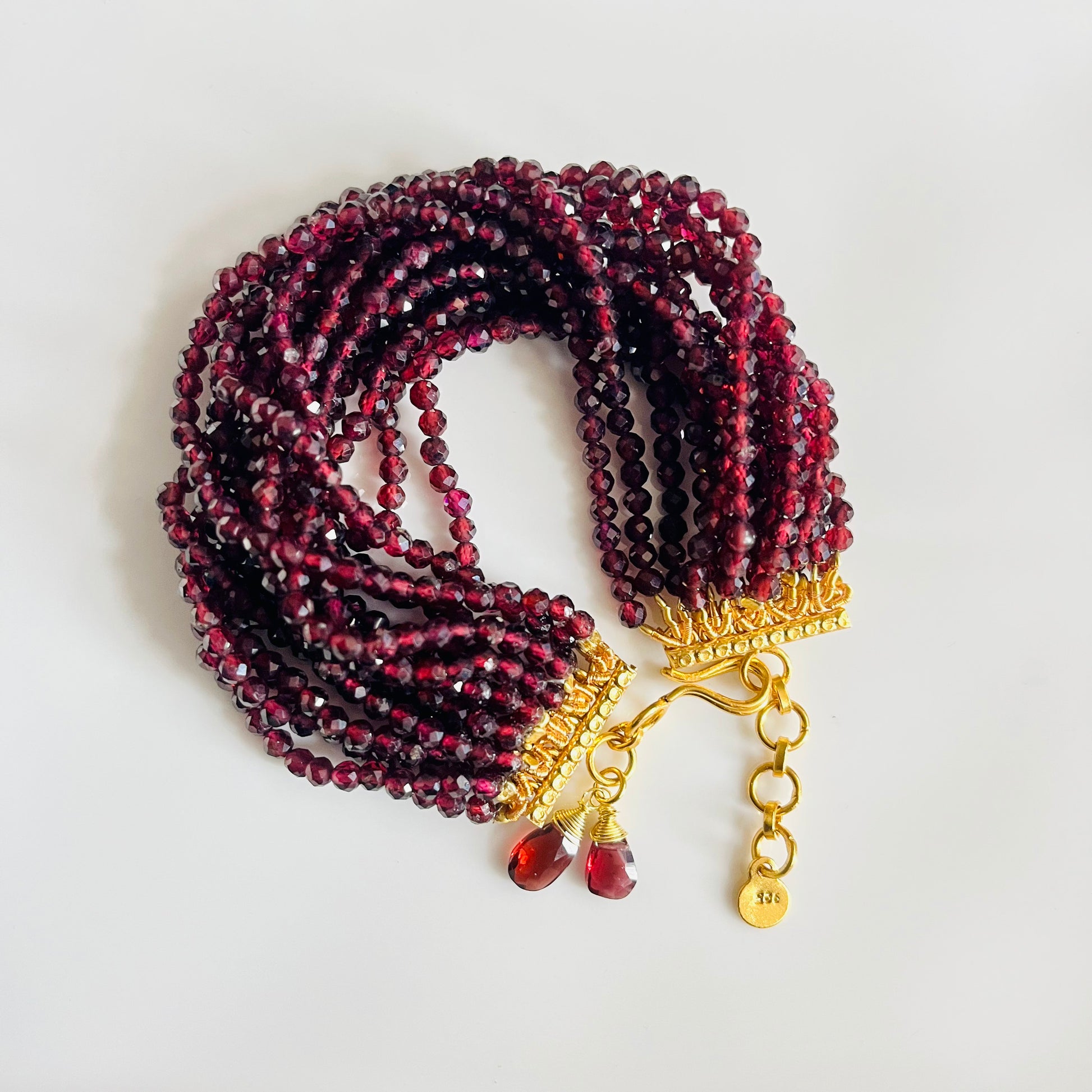 Fifteen glorious strands of faceted natural garnet create this captivating multi-strand gemstone bracelet, wrapping your wrist in rich shades of deep red. The translucent 3–3.5mm gems sparkle with warmth and passion, adding a touch of bold elegance that transitions effortlessly from day to night.