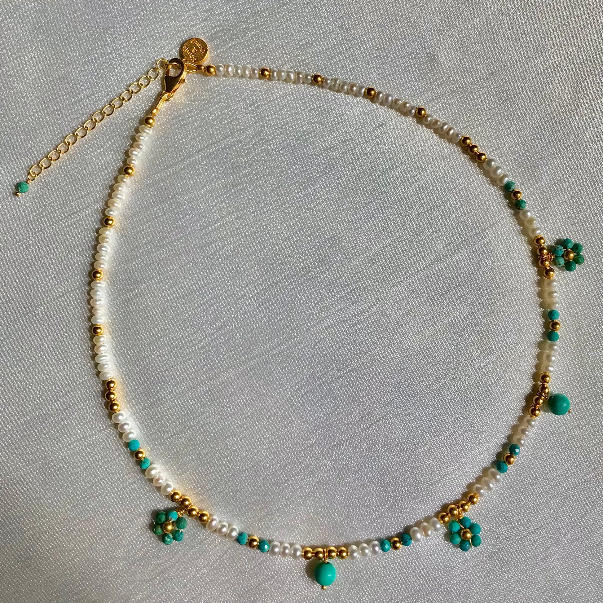Her Name Was Daisy Pearl-Turquoise Necklace